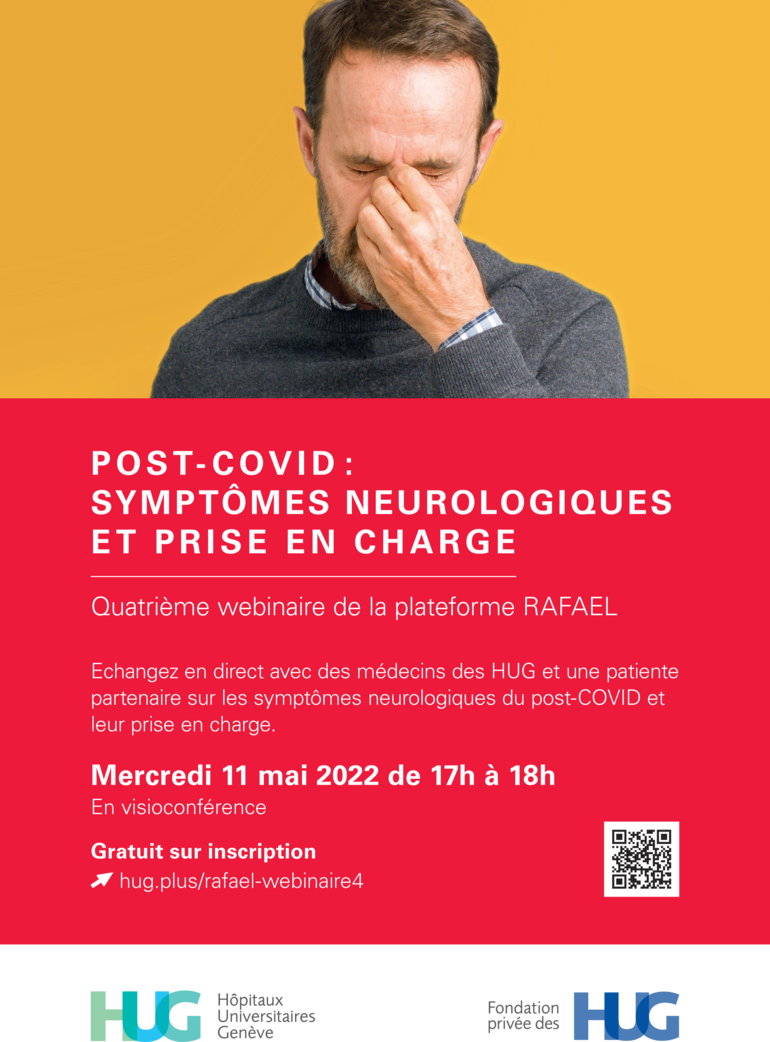 Le mercredi 11 mai 2022, de 17h à 18h, échangez en direct avec des médecins des HUG et un patient partenaire sur les symptômes neurologiques du post-COVID chez les adultes et les enfants, et leur prise en charge.