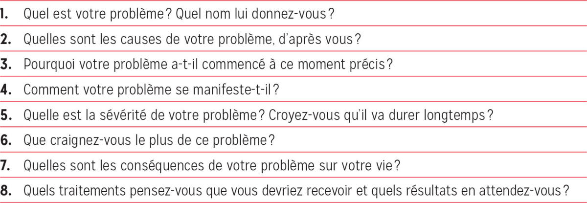 « Samiel, requérant d’asile originaire de l’Afrique orientale, m’expliquait qu’on avait jeté le mauvais œil sur lui, et que pour cette raison il avait mal à la tête, souffrait d’une fatigue telle qu’il ne pouvait pas sortir de son lit la plupart du temps et qu’il ne recevait pas d’autorisation de séjour. » Pour ce patient, l’état anxieux, voire dépressif, dont il souffrait était compris comme un problème de mauvais œil, avec des manifestations physiques. Dans certains cas, le patient peut donner des explications en lien avec une faute commise, il serait puni par son Dieu ou il aurait fâché des esprits. Tant que cette souffrance ne peut pas être associée à un problème psychique, le patient n’acceptera que difficilement d’aller consulter un psychiatre. Nous verrons sous le point 8 quelques pistes dans ce sens et nous proposons de reprendre le guide de questionnement de Kleinman (cf. tableau III), pour enrichir cette évaluation.