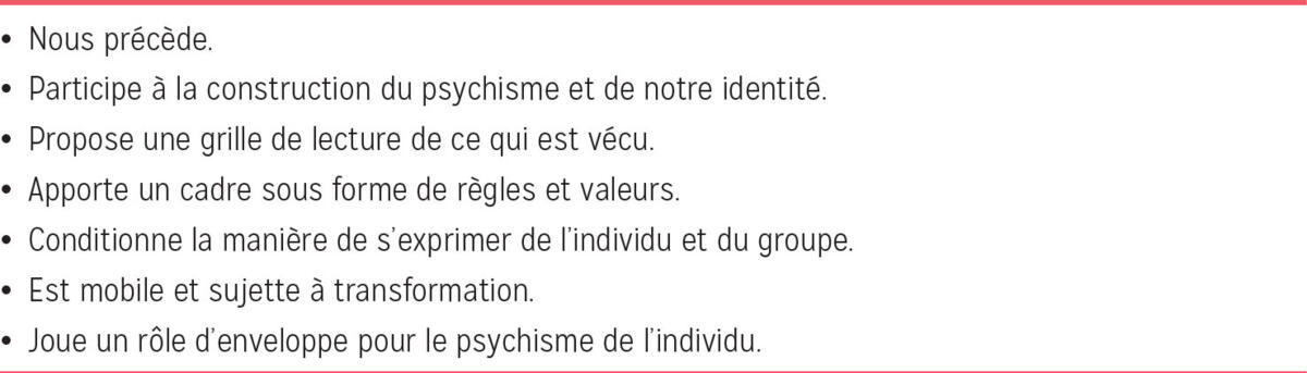 • La culture influence de manière prépondérante la construction du psychisme, d’une identité singulière et collective et, par conséquent, la manière d’exprimer les symptômes psychiques.